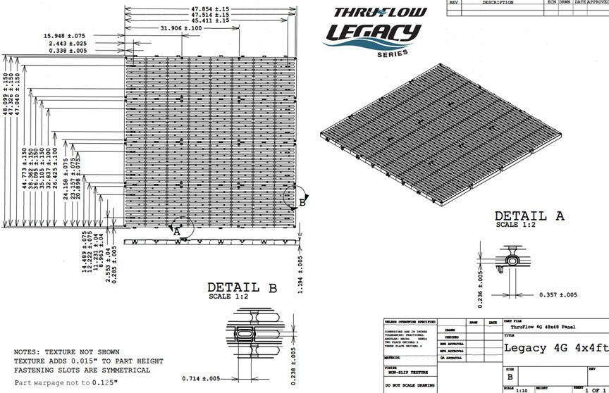 Revêtement de plancher Thruflow pour quais, spas, piscines, balcons, et terrasses.